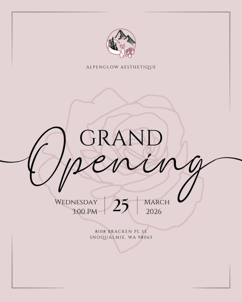 Big news! Alpenglow Aesthetique has moved to Snoqualmie Ridge! Our new address is 8108 Bracken Pl. SE, Snoqualmie, WA 98065. We are right next to Big Star in the Venture Commerce Center, just past No Boat Brewing and The Snoqualmie Hotel.